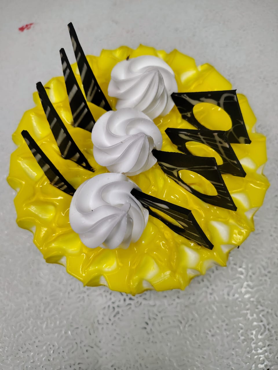 Pineapple Flavour Fresh Cake एक रिच और फ्रेश डेज़र्ट है जिसमें सॉफ्ट वनीला स्पॉन्ज, स्मूद क्रीम और जूसी पाइनएप्पल फ्लेवर का परफेक्ट मेल है।